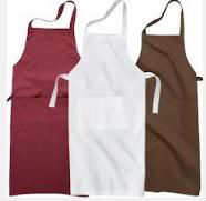 Demonstrated is a classy bib apron in bright colored appearance.