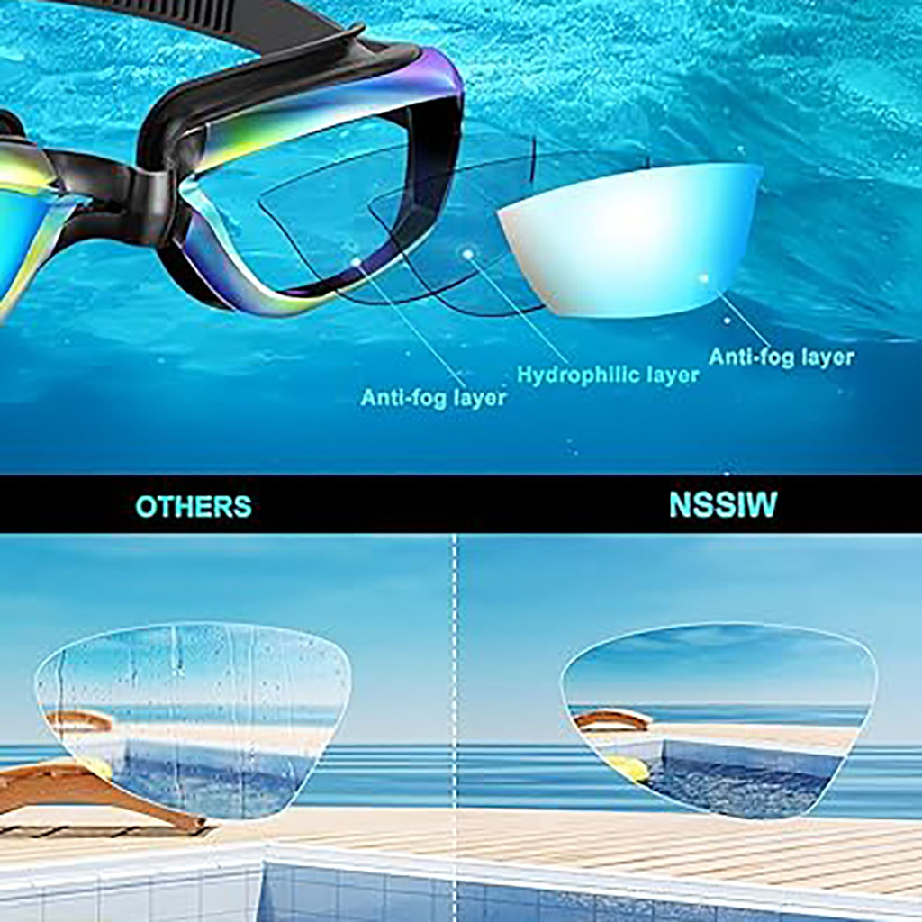- The inner PC lenses of the swim goggles feature the latest anti-fog treatment, allowing you to see underwater without blurring or distortion