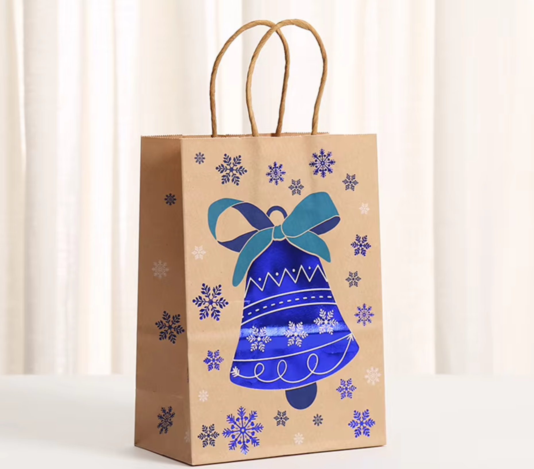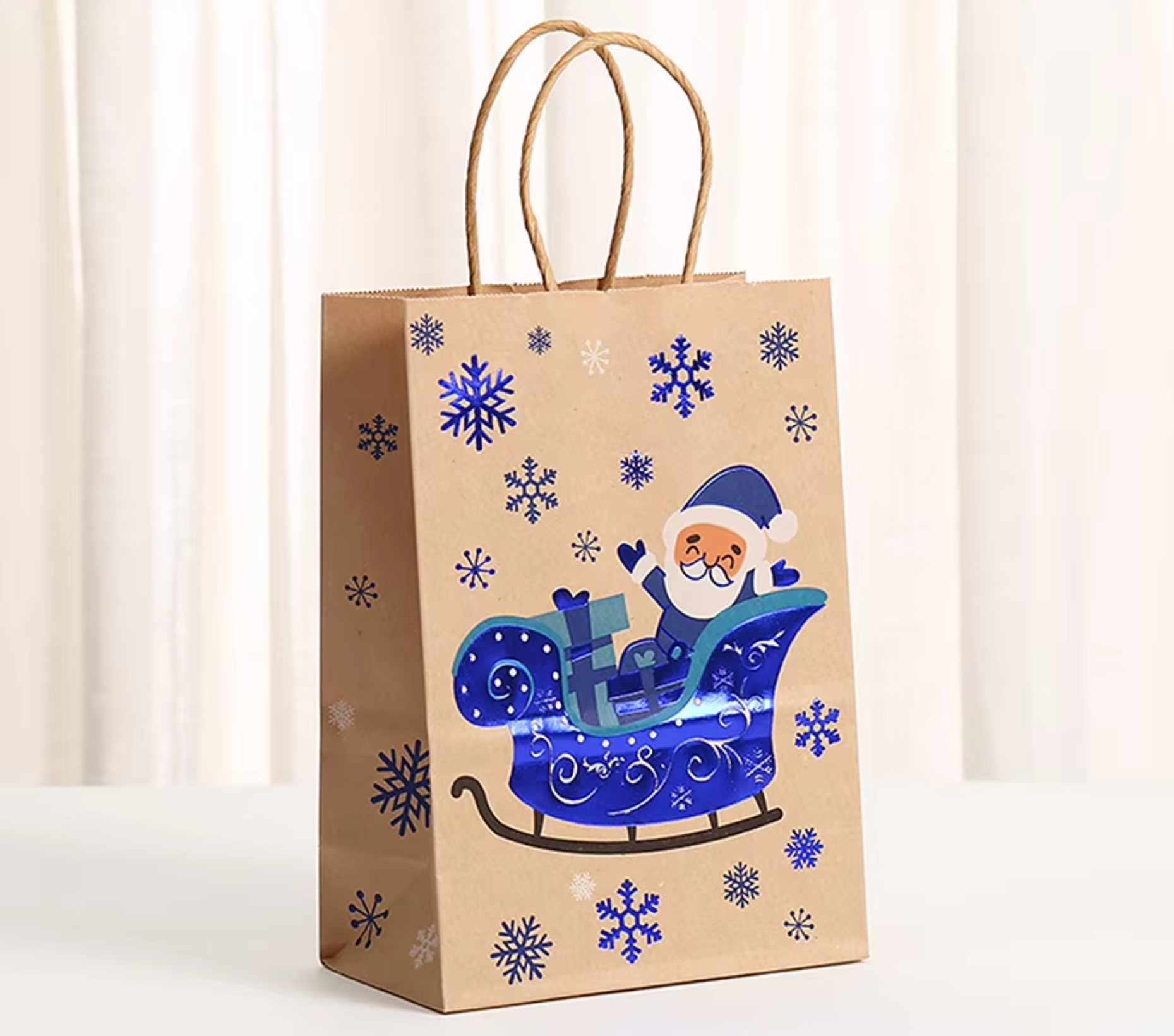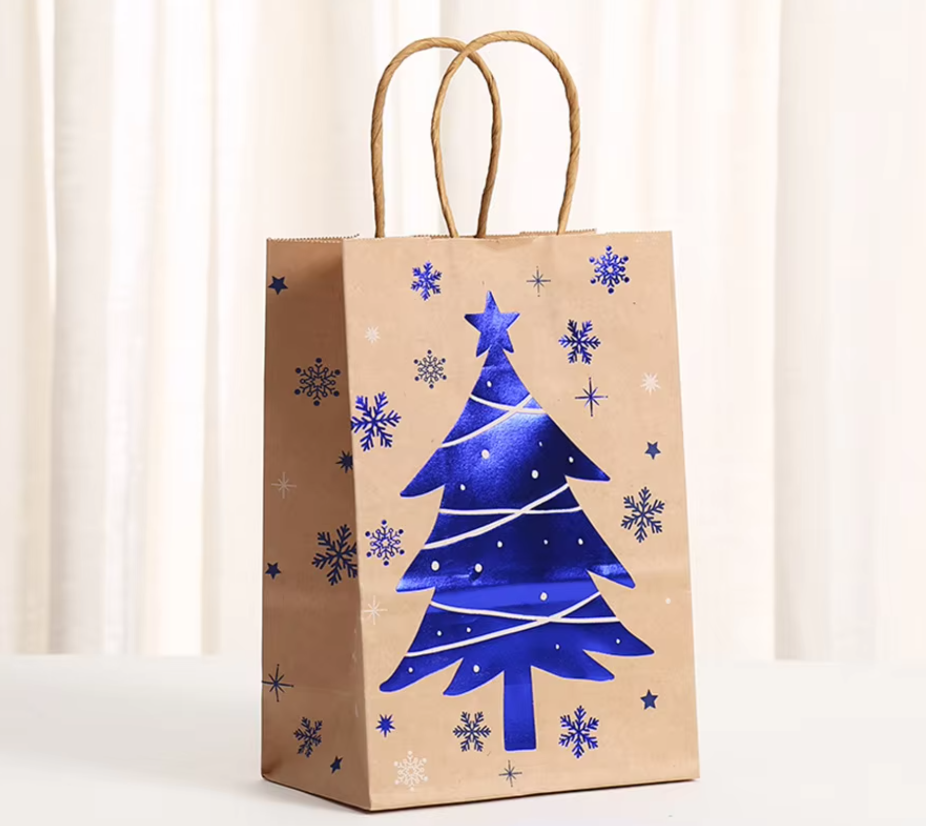 Advanced Sense Cross-Border Blue Santa Claus Tree Kraft Paper Gift Packaging Bag Christmas Handbag Hot Stamping Surface Crafts