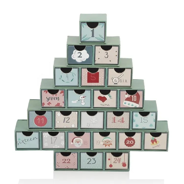 Just like the name of this box, this custom box is generally composed of many drawer boxes, with this structure, it can not only be used as a surprise gift box, but also as a storage box for some small items and jewels. Most drawer advent calendar packaging boxes are made of cardboard paper so that it is sturdy enough to store your small gifts.