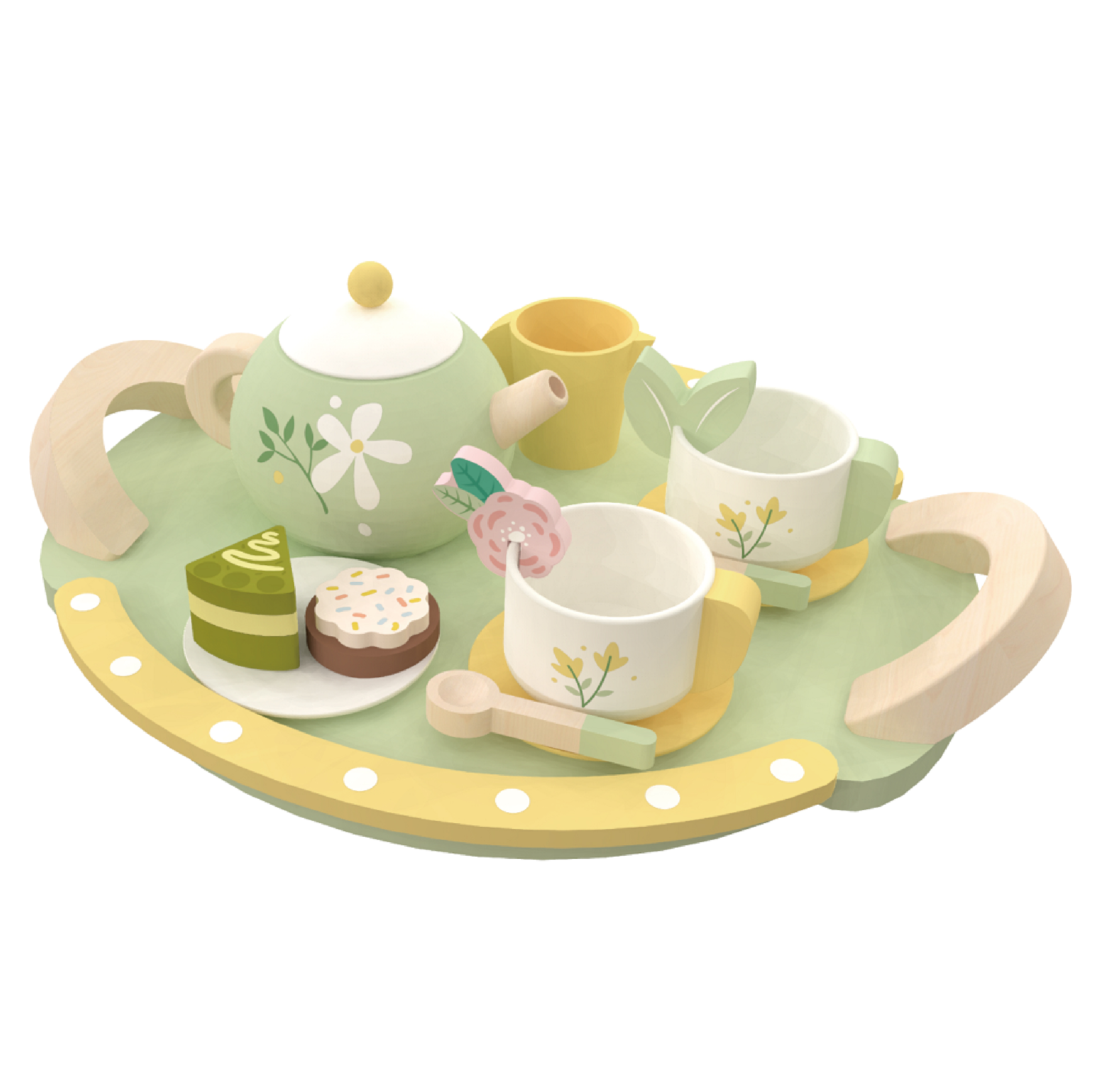 The afternoon tea playset is crafted from child-safe, durable materials to ensure long-lasting enjoyment and safety. The toy includes everything needed for a realistic tea party experience: a beautifully detailed teapot with a removable lid, teacups and saucers, and an assortment of colorful pretend pastries and sandwiches. Each piece is carefully designed with vibrant colors and intricate patterns to capture children's attention and stimulate their imagination. Designed to inspire imaginative play, this delightful set allows children to host a realistic and interesting tea party, enhancing their social skills and creativity. It's also an excellent educational toy for parent-child time.