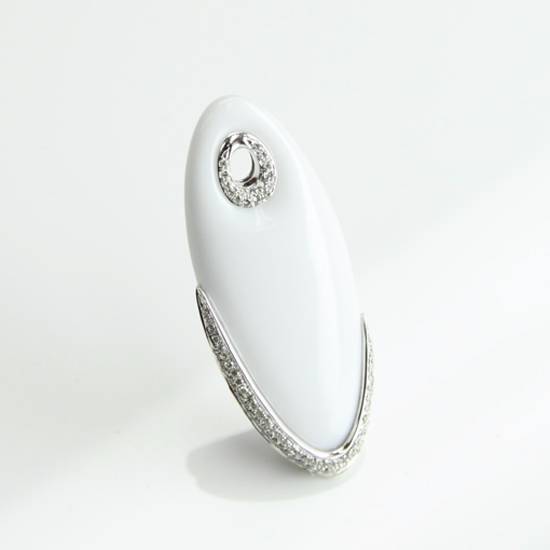 This elegant pendant features a slightly irregular oval design. The centerpiece of this jewelry is a white agate stone, which is further adorned by a white gold crust with diamonds encrusted on the surface. This pendant is a deserved addition to your jewelry collection.