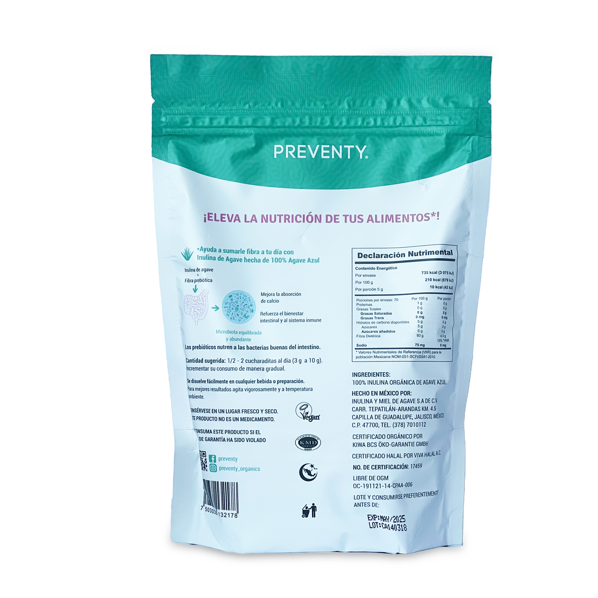 Preventy is a natural fiber obtained from the Blue Weber Agave. It is highly soluble with a neutral flavour. Agave inulin is mainly used to create funcional food products with dietary fiber and prebiotic capacity.