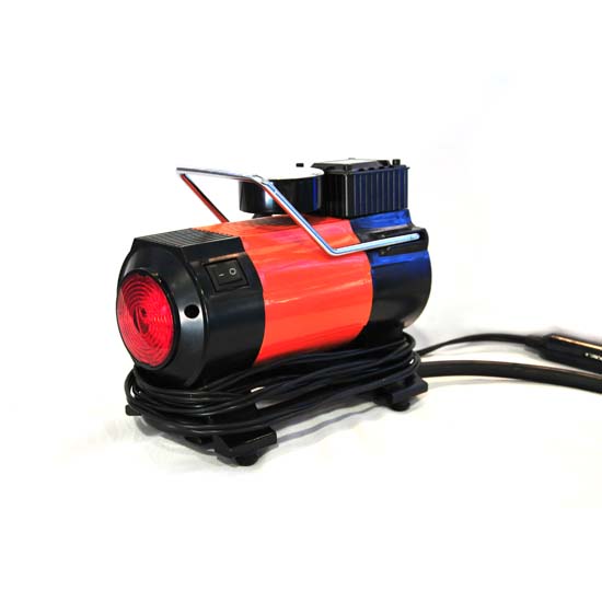 Presented here is an air compressor with a portable design. The air compressor is equipped with a built-in light, ensuring easy and convenient operation at night. The displayed air compressor also features 3 nozzle adapters for car tires, bikes, balls, etc.