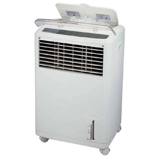 The 2-in-1 air cooler and humidifier boasts oscillating louvers for cooling a larger area. It comes with an 8-hour timer and 3 speed settings. This versatile air cooler is the ideal companion for air conditioning.