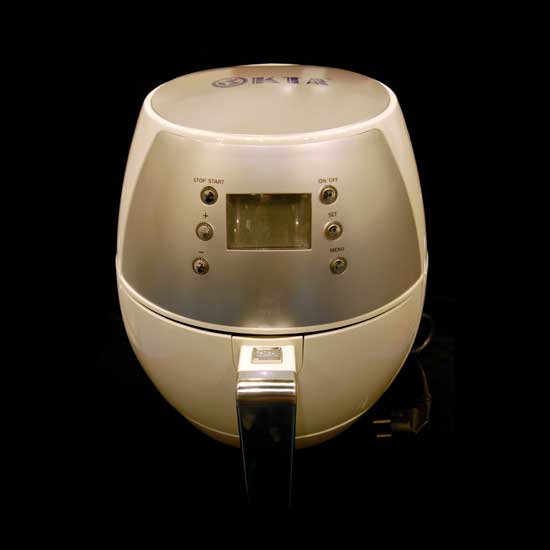 This white-and-silvery hued air fryer with a polished finish boasts an LCD display for showing relevant information clearly. It is fitted with 6 round buttons for facile operation. This reliable air fryer allows you to prepare non-oil dishes at home.