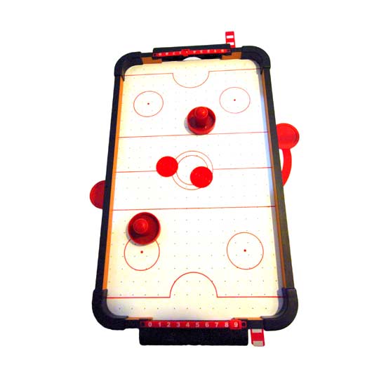 This air hockey table goes with a smooth, white playing surface with colorful graphics. The ultra modern design with a high gloss play-field contributes to super fast action. The hockey table also boasts sliding marks scale for a more exciting atmosphere.