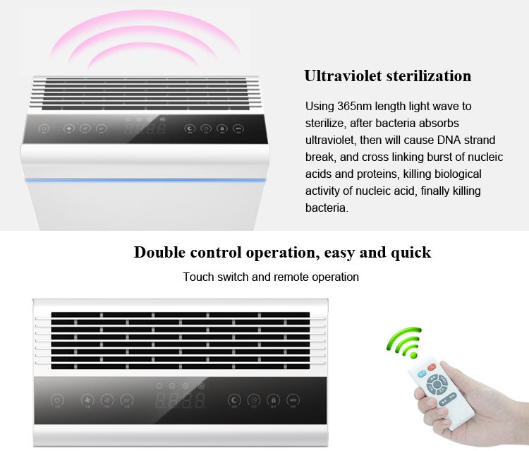 1.Air purifier + Ionizer Design (2 in 1) |