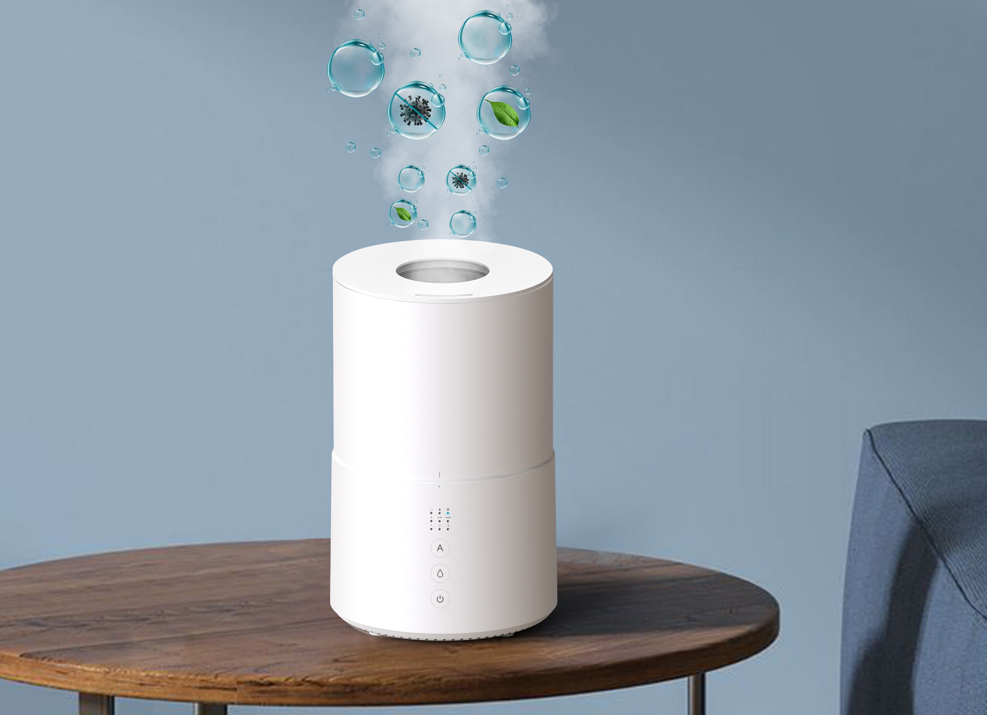 智能消毒杀菌(ne-click Sterilization Mode)、雾化加湿(Humidification)、睡眠模式(sleep)、缺水保护(Water-Load Protection)