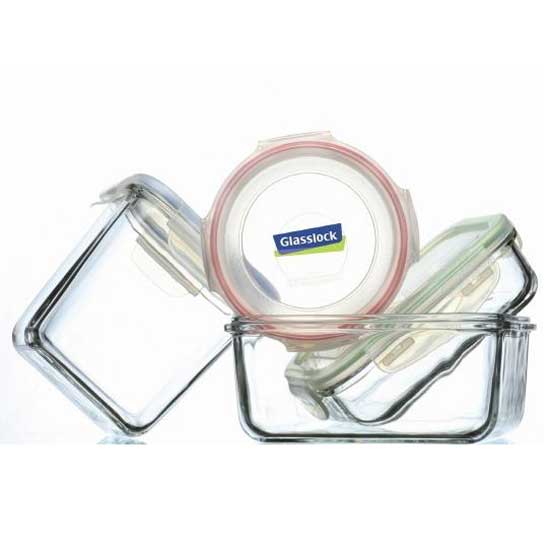 The food container is made of tempered glass with a plastic lid. The food container is air-tight to keep food fresh longer. The space-saving design fits easily into kitchen drawers.