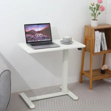 The air column height-adjustable table features a smooth and noise-free lifting process. The wheels have been upgraded to invisible wheels for a more aesthetically pleasing appearance, making the table easier to move. It is suitable for offices, living rooms, studies, and hospitals, and is used for work, reading, watching TV series, and dining