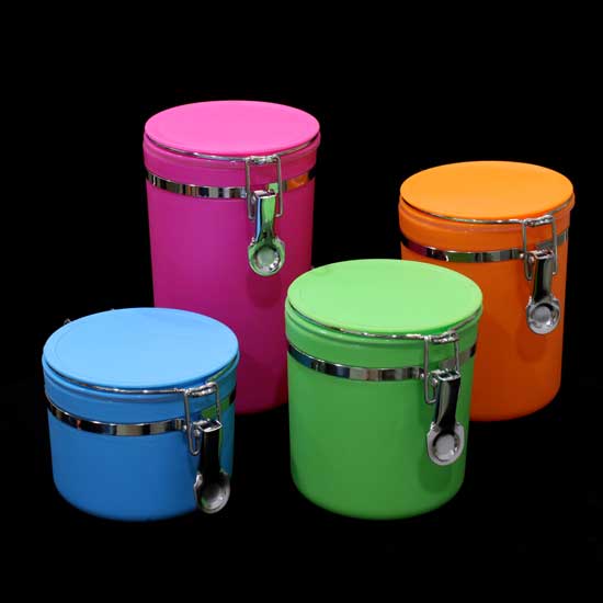 This is an airtight canister set in different colors and sizes. The canister is finely made with a durable plastic casing with a metal lock. The canister is space-saving to be stored in any kitchen.
