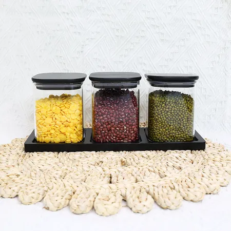 3pcs Set Airtight Kitchen Food Storage Container with Bamboo Lids and Wooden Stand