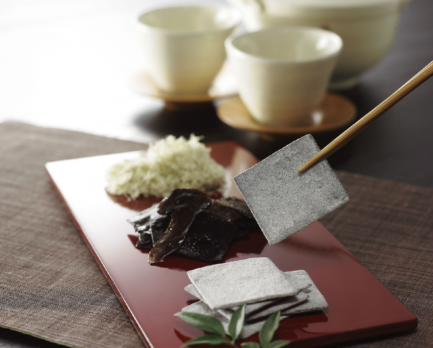 Ma-konbu, a natural resource from the south of Hokkaido, since long ago has been boiled lightly over open flames, cut into slices and left to dry. Two generations ago, our founder invented the sliced shiofuki konbu known as "Aji Matsuba". It is our company's bestseller and now it is loved by everyone. You can have it on top of white rice, inside rice balls, with chazuke rice or even sake. It also goes well with pastas, fried foods, yakisoba, salads and rice soups. And it is excellent as a seasoner, sprinkled on western foods and meat dishes.