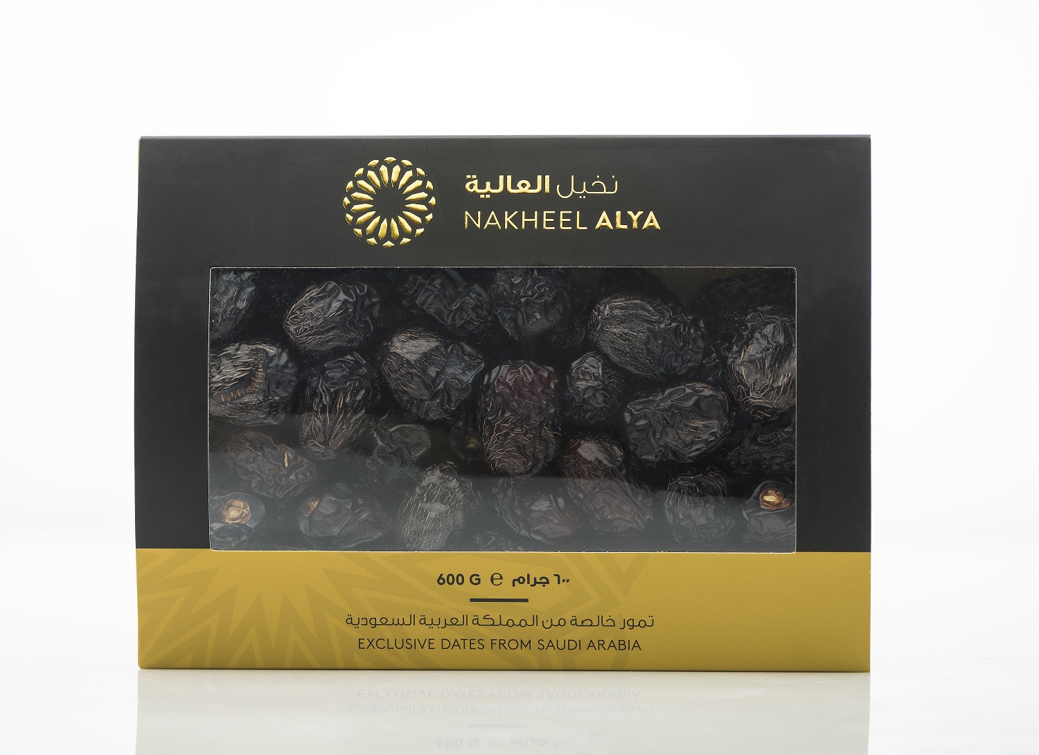 Ajwa dates packaged in a luxury black and gold paper box. The weight can be 350g, 600g, and 800g. We have different grades of this dates.