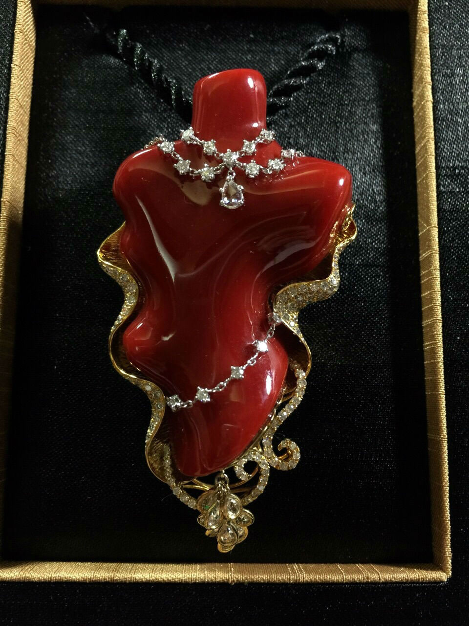 • Material:Coral, Diamond and 18K gold