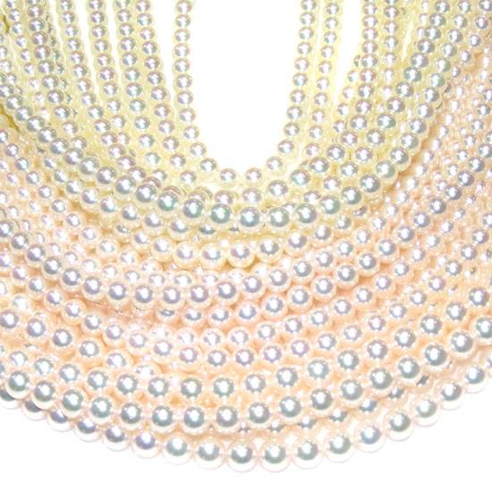 As shown are necklaces made of akoya pearls in their narural colour. These akoya pearl necklaces well present the elegance of the wearer, so the pearl necklaces are best to be worn in formal occasions like parties, cocktails ec.