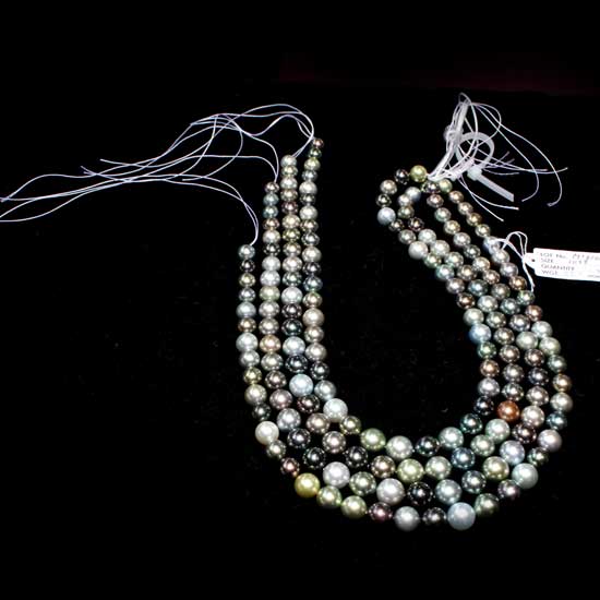 Shown here is a beautiful Akoya pearl necklace coming in a simple chain style. The pearls boast fancy colors with enchanting luster. The stylish color combination makes this necklace a sleek fashion item.