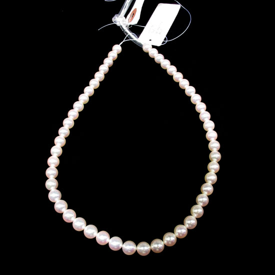Displayed here is a piece of pearl necklace with a refined design. It is well arranged with round polished akoya pearls for added luster. This elegant akoya pearl necklace complements your look nicely.