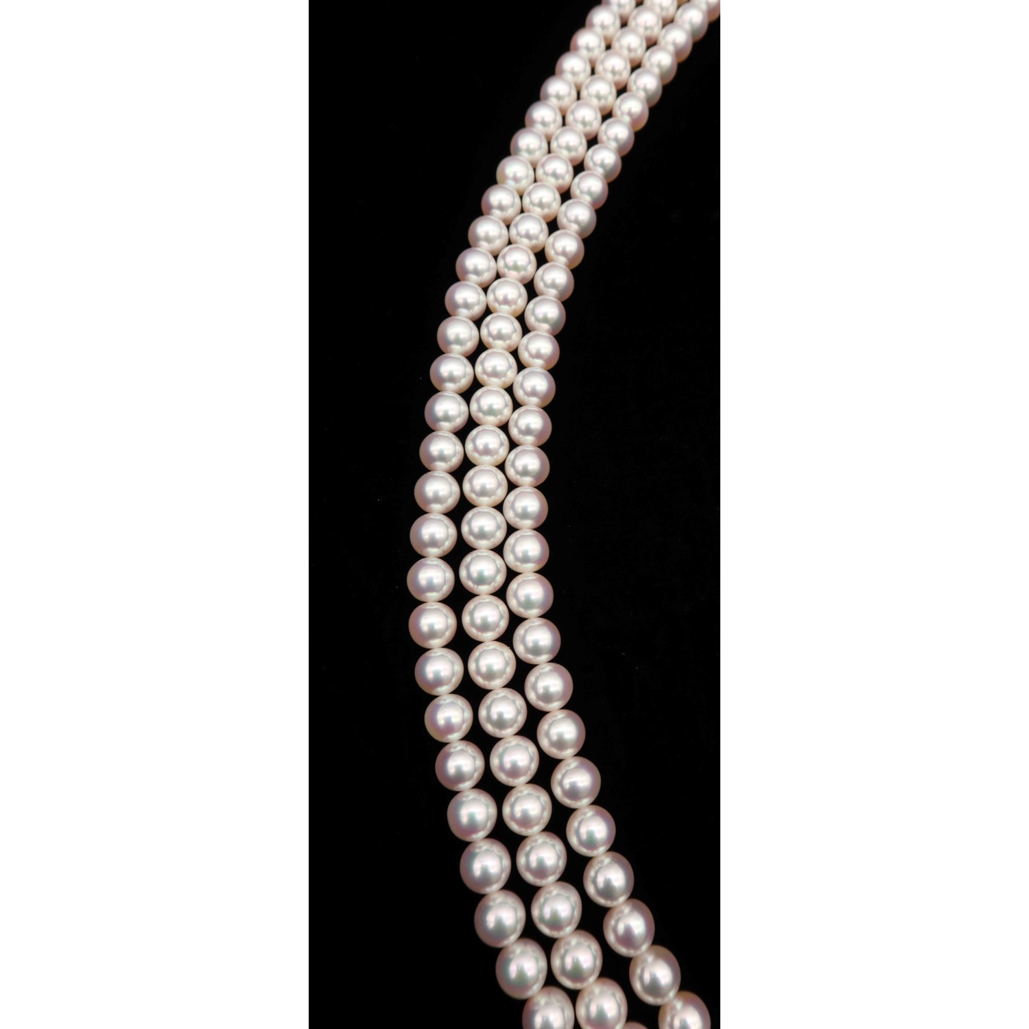 Japanese Akoya Pearl strands. White color. The length 16inch. The size 3.5-9.0mm.