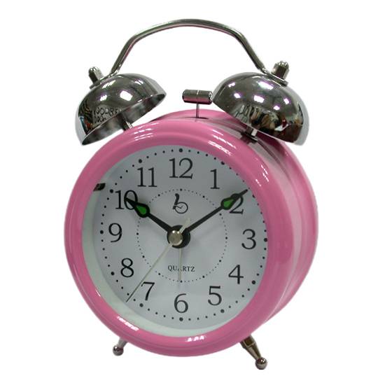 This is an alarm clock. It is in a classic twin-bell design. It features functions like snooze and light.