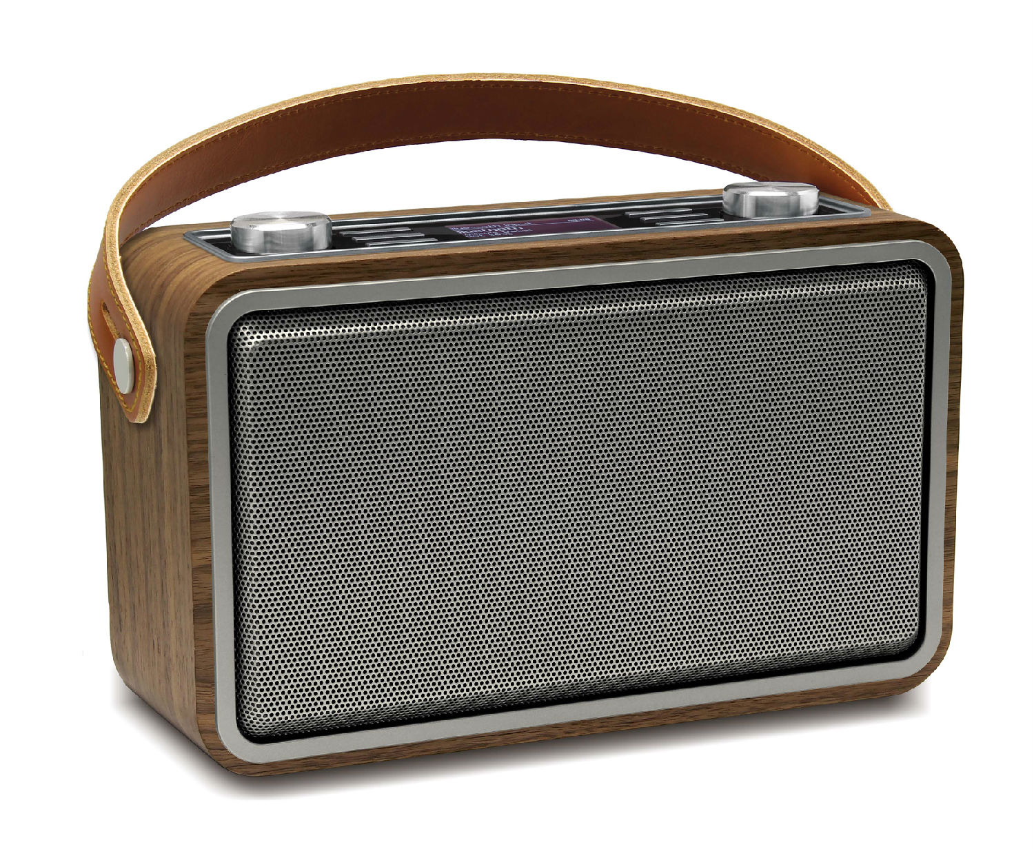 Wood cabinet, Alarm Clock DAB Radio, DAB/DAB+/FM radio, Internet Radio for listensing more than 10,000 worldwide stations, Leather handle, Multi-room, Spotify connect, Speaker output 5Wrms x 2, OLED display, Clock and Alarm, Sleep and Snooze, UNDOK smart App control, Rechargeable battery (7.4V 5000mAh)