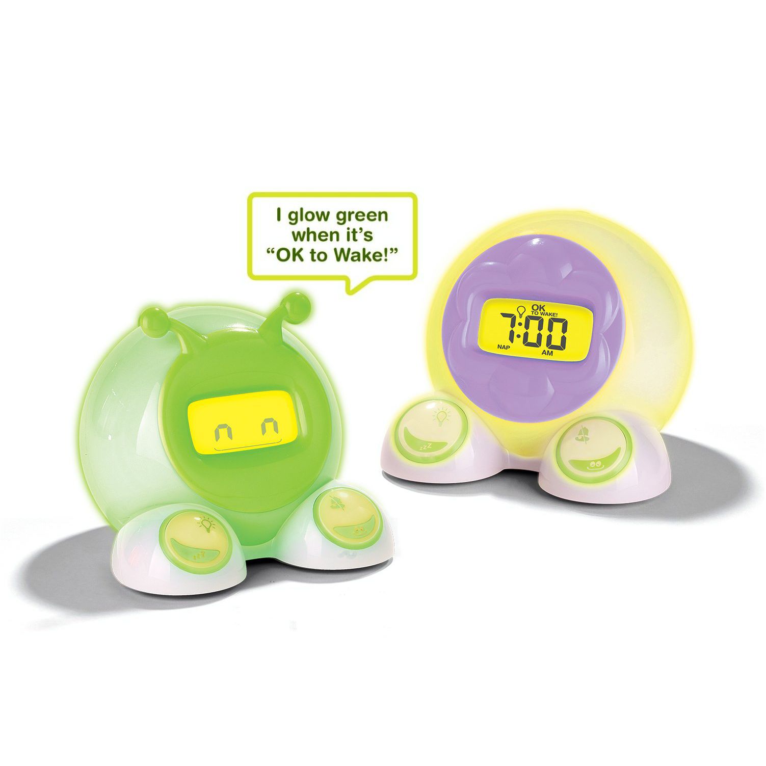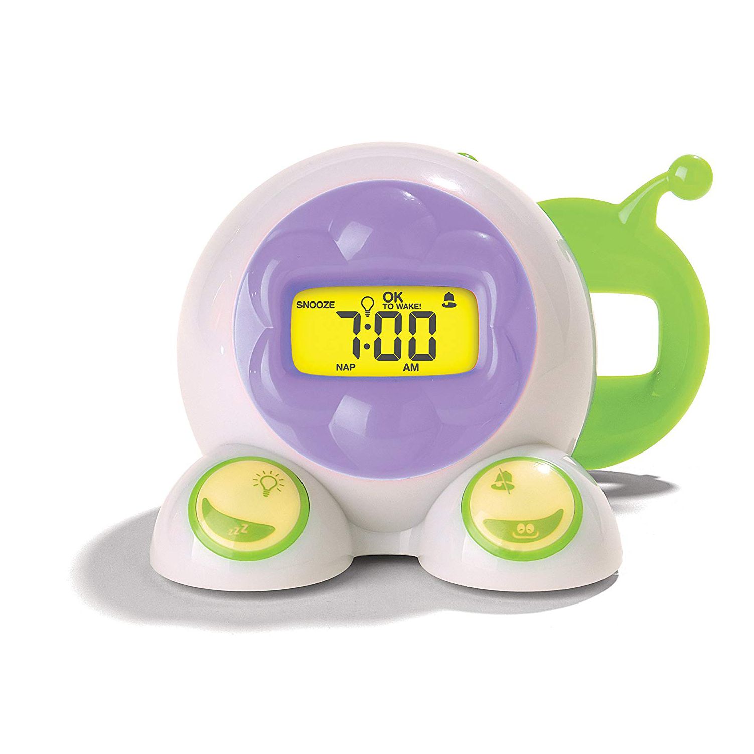 • The green light is a simple visual indicator that informs children when it's time to get up, instead of them waking up the whole family way too early!