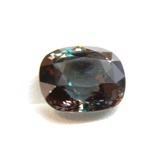 The faceted alexantrite comes with a cushion cut, shining with dazzling radiance. This natural alexantrite stone is able to change color, that it is green in daylight and turns a soft shade of raspberry red in incandescent light. The unique optical characteristic makes alexantrite one of the most valuable stones of all.