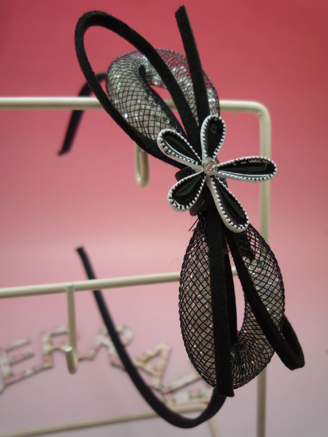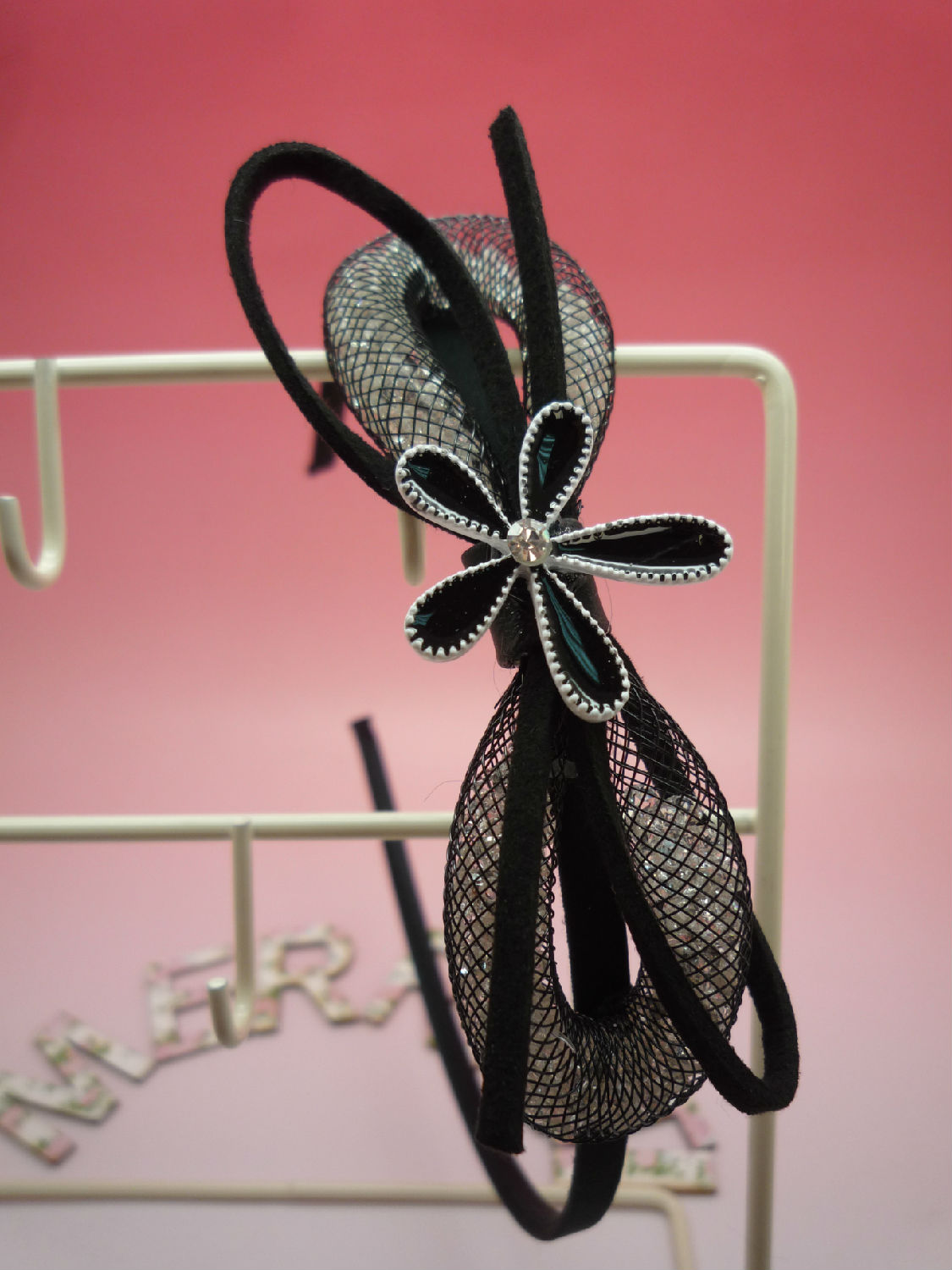 Hold back your hair with this pleasant Alice band. This headband features a black floral ornament for a sense of understated elegance. The artificial diamond detailing lends a luxury vibe to the headband. Practical and classy, this Alice band can perfectly complement with any style of clothing.
