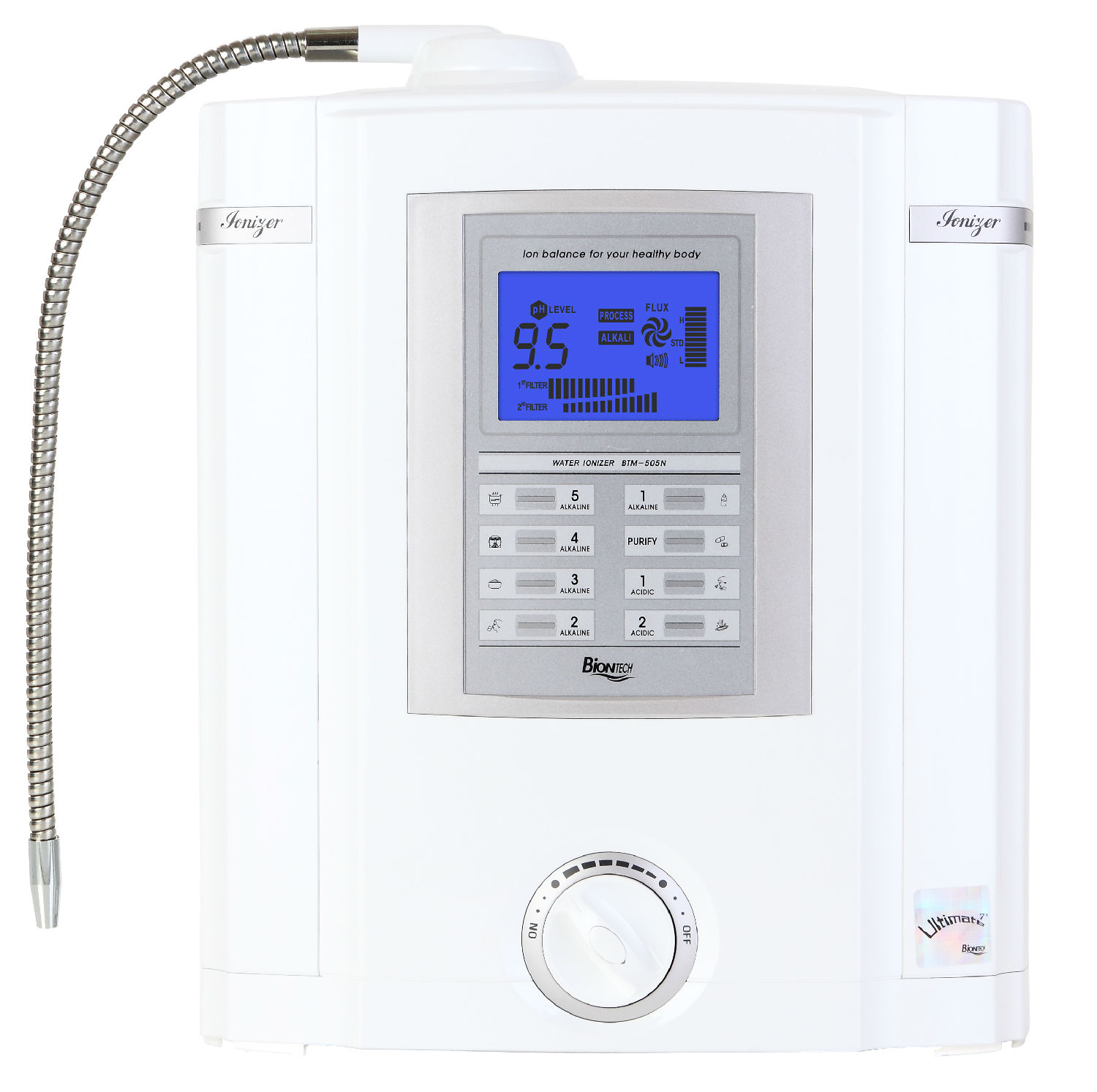 - Power : transformer or SMPS - Dual filtering ionzier - 5,7,9 plates available - Alkaline 5 levels, Purified water, Acidic water ( 2 levels) - pH 3.5 -pH10.5 - Manual valve, touch panel