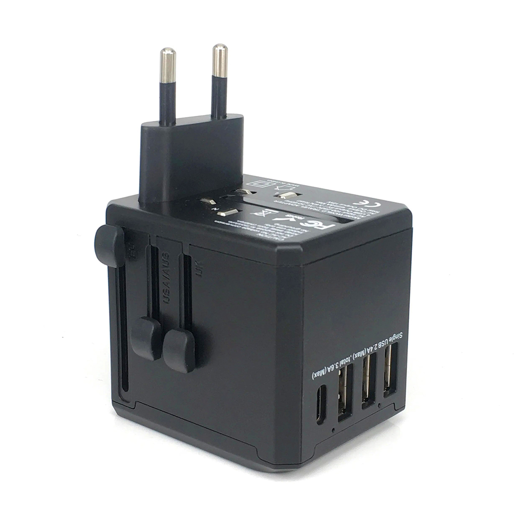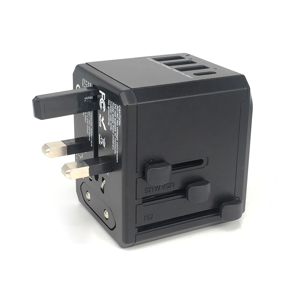 All-in 1 Universal Travel Adaptor with 3 USB and 1 Type-C Ports includes the following features :