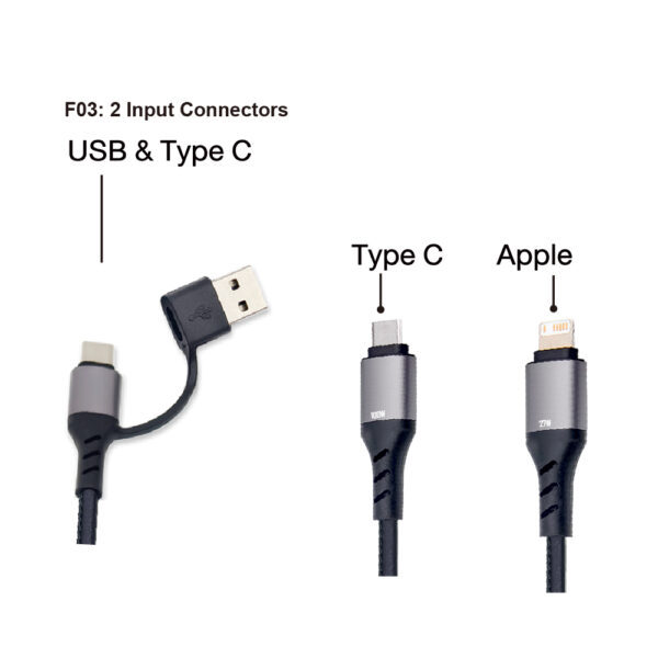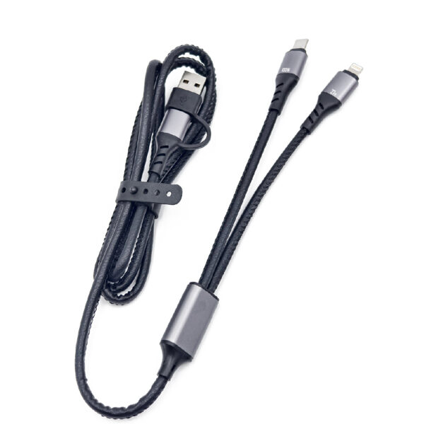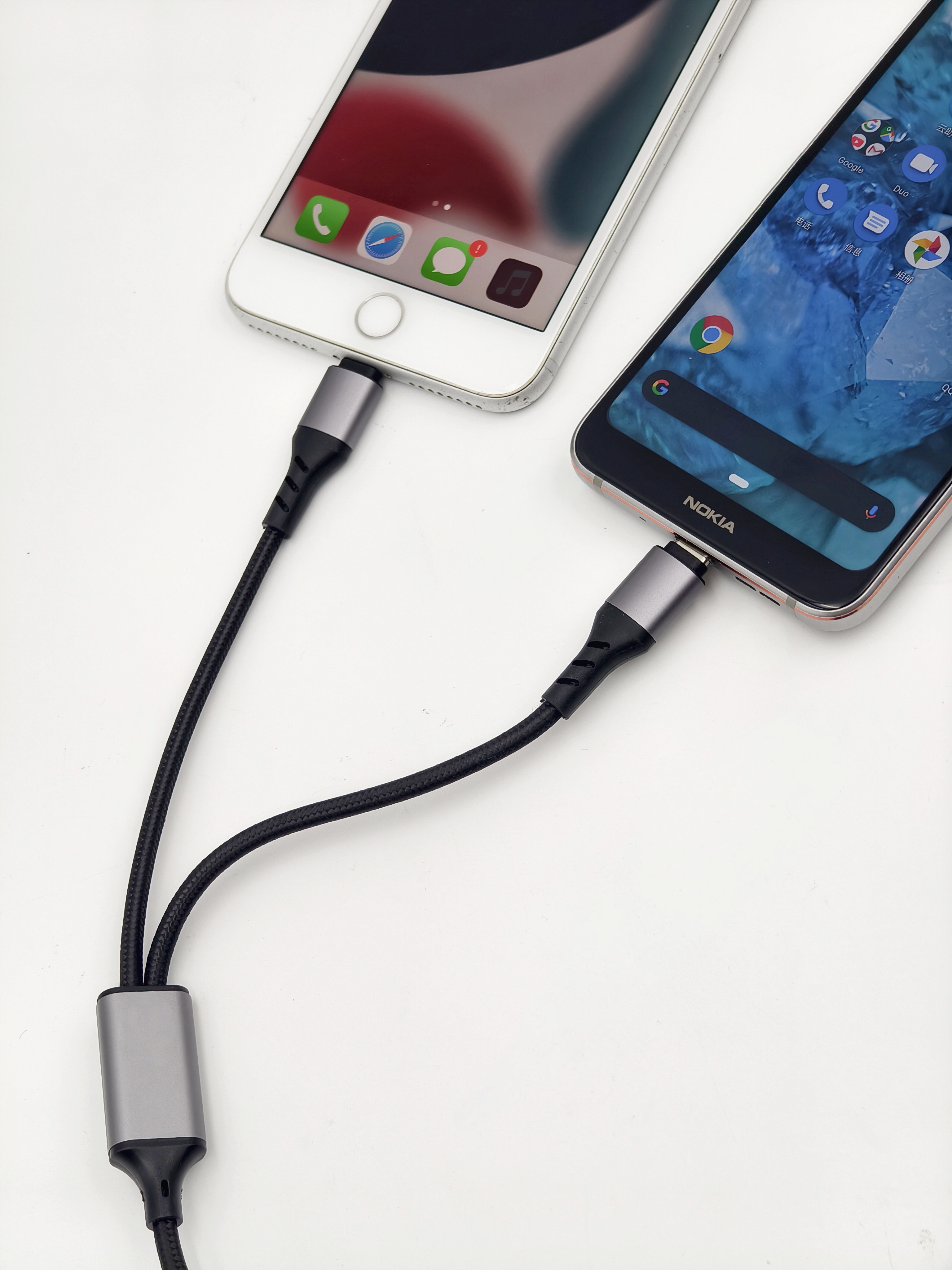 With USB-A and USB-C inputs, this cable offers the flexibility to connect to various chargers and output to USB-C and Lightning devices, making it compatible with Apple, Android, laptops, tablets, and more. It even supports dual iPhone charging, making it perfect for travel, workstations, or busy homes.