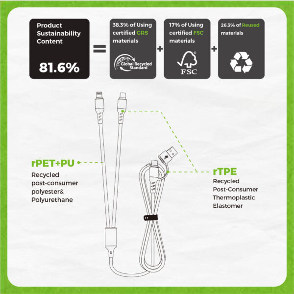 “We upgraded the injection molding process to make the case longer than before to better protect the plug. 4-in-1 100W ultra-fast charging and sync cable | USB-C + Lightning | 120cm is your go-to solution for powering multiple devices quickly and efficiently, while aligning your brand with sustainability.