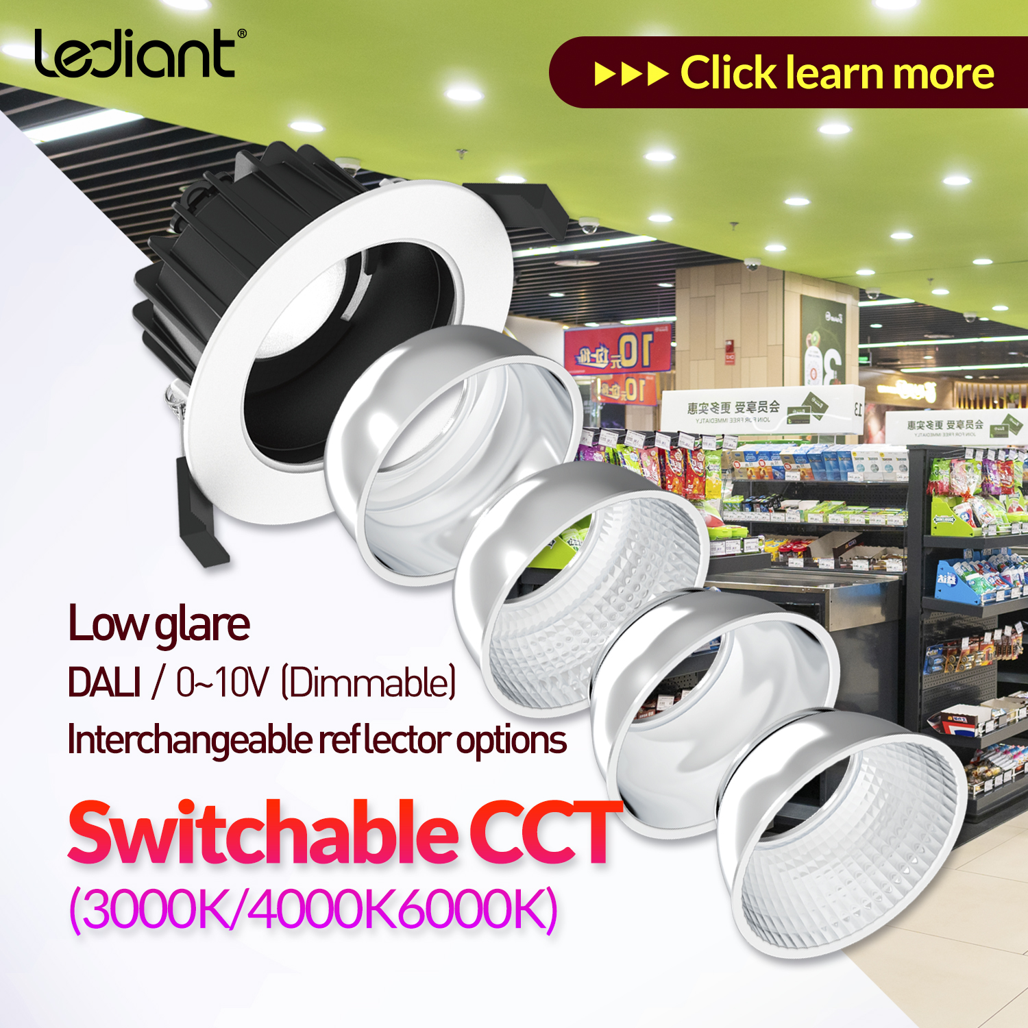 Changeable color temperature (CCT) with patented trailing edge: 3000K 4000K & 6000K;