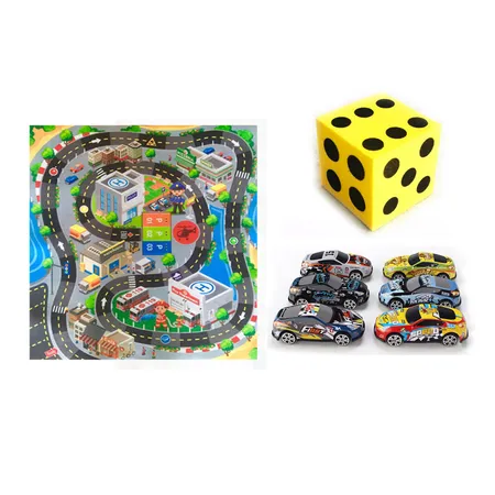 Highlighted here is a play mat in the design of a city themed racing course. It includes three 6-color alloy cars with one EVA dice and offers a safe and comfortable place for children to play on. This play mat provides good cushioning to protect kids and can match perfectly with any children’s room.