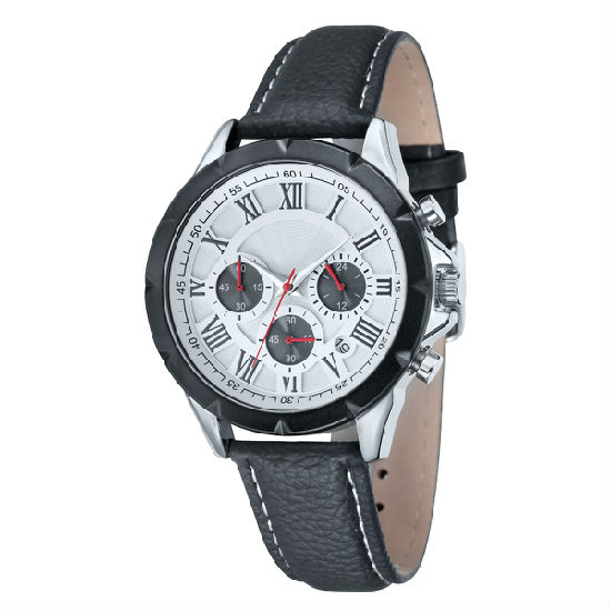 • Alloy case, aluminium top ring, ips plating, structural dial with up index, genuine leather strap, 3ATM, japan chronograph movement