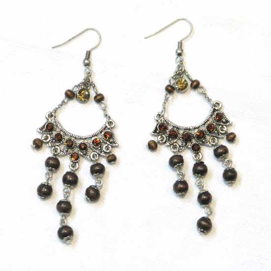 This pair of alloy earrings comes in a classical teardrop design. The tiny stones and wooden beads are embedded to the alloy frame firmly. This pair of Oriental earrings is especially suitable for elegant ladies.