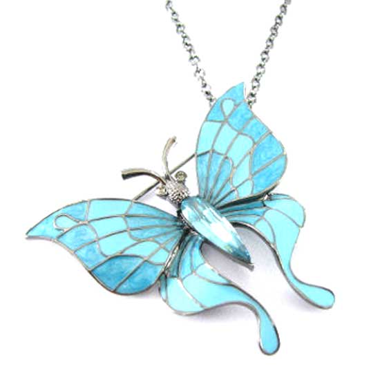 This beautiful alloy jewelry is a pendant, as well as a brooch. It is encrusted with crystals and CZ stones, delivering a brilliant shine. The butterfly design showcases a touch of elegance.