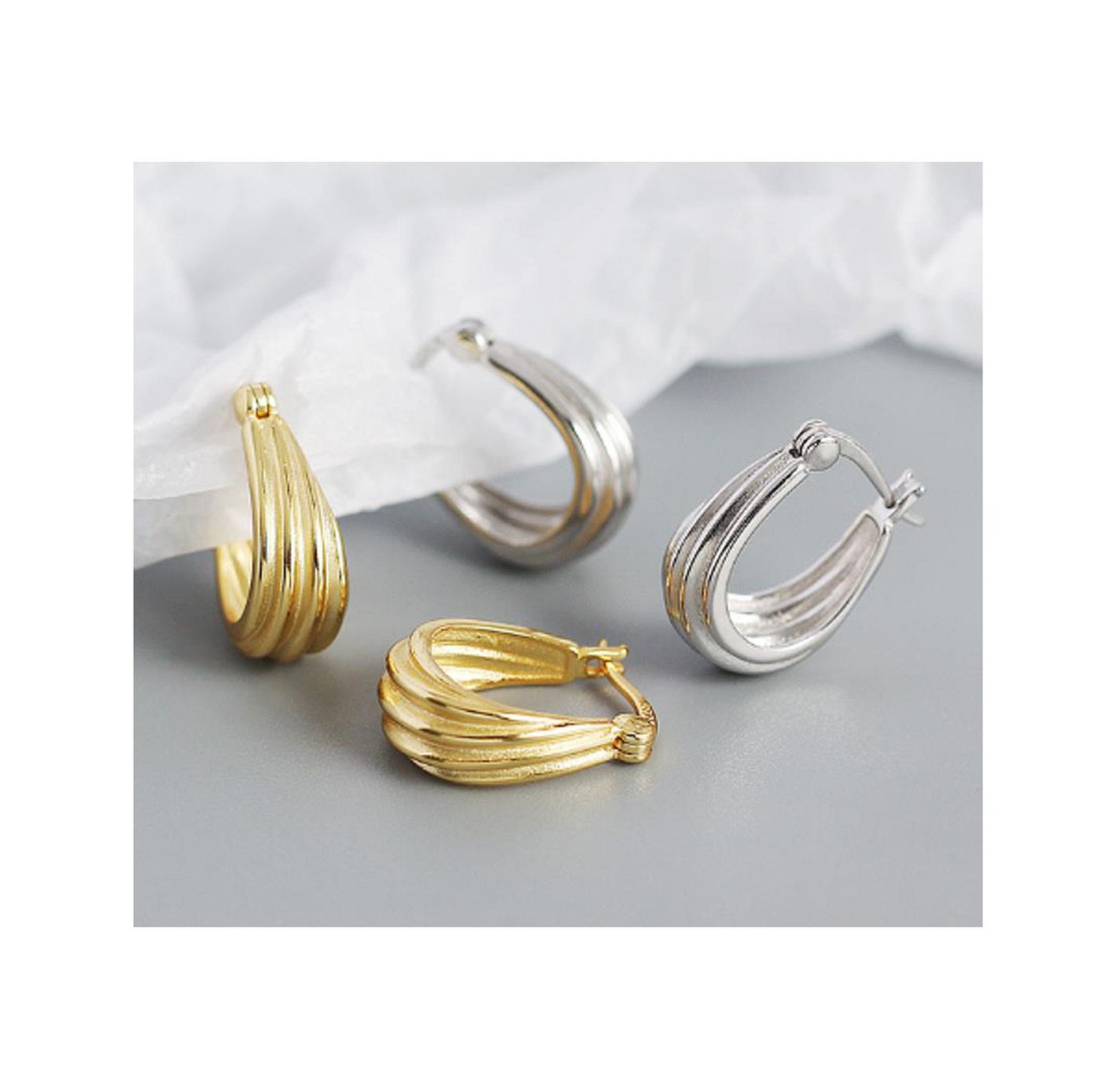 As shown is a high-fashion gold & silver plated alloy parts hoop earring.