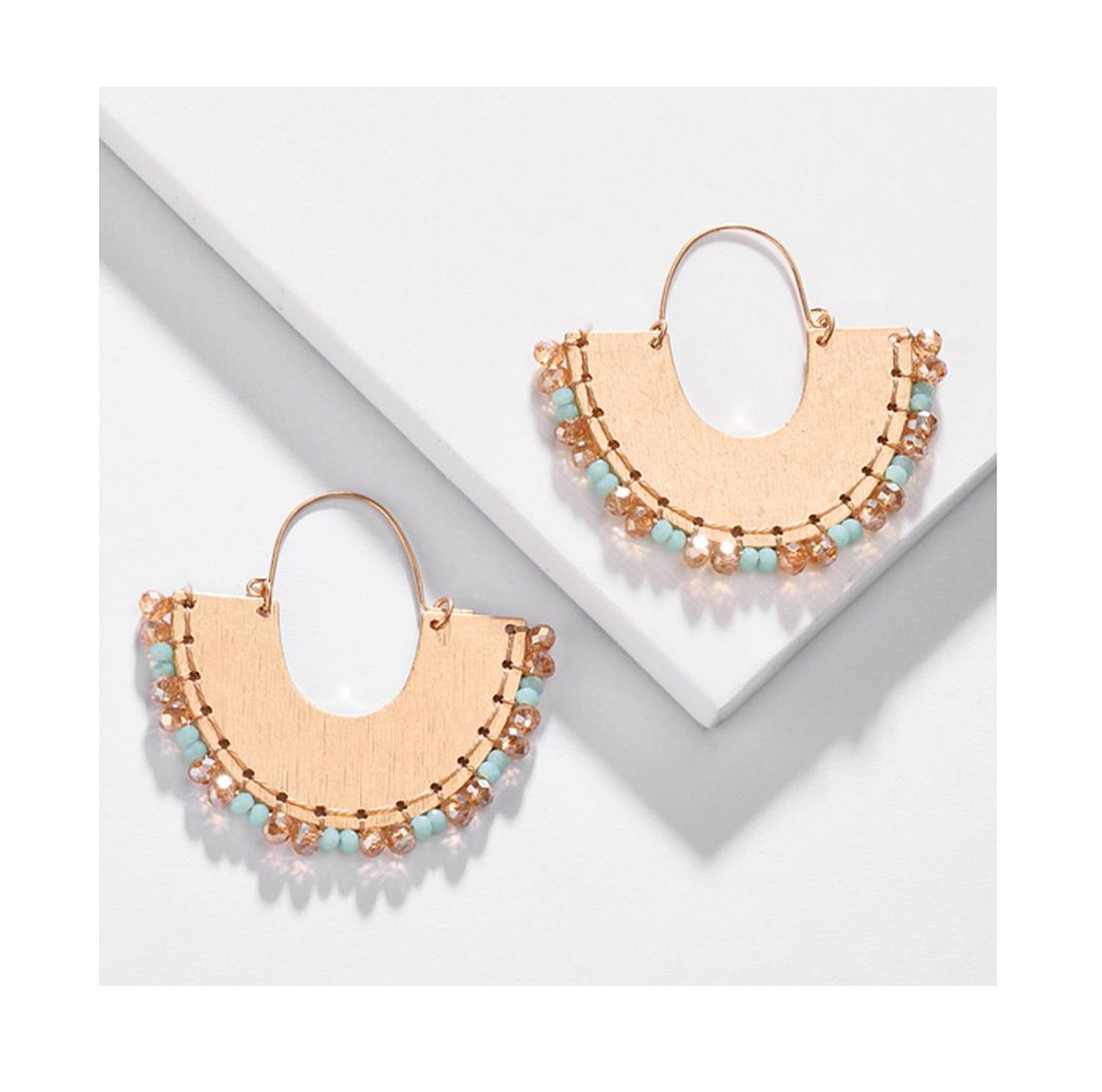 As shown is a high-fashion Plastic beads half circle style drop earring.