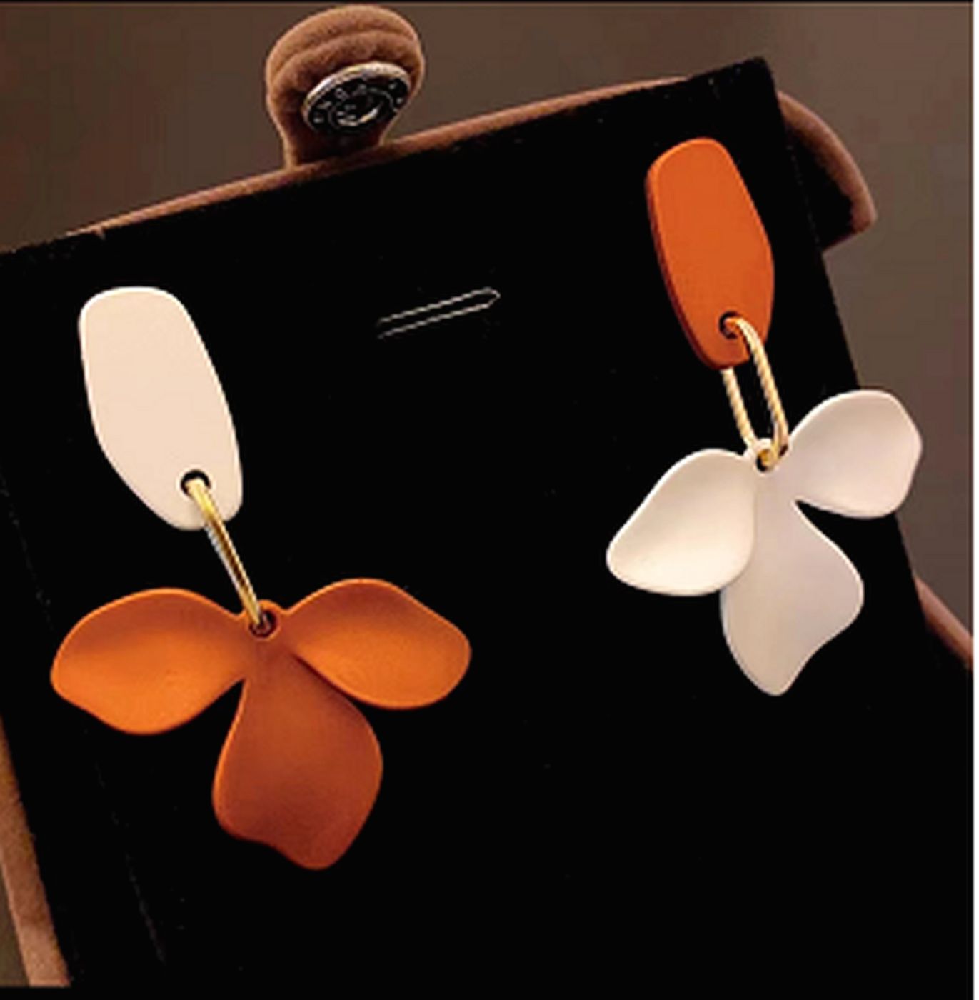 As shown is a high-fashion leaf shape alloy parts drop earring.