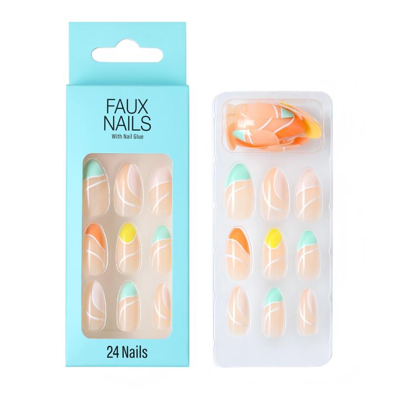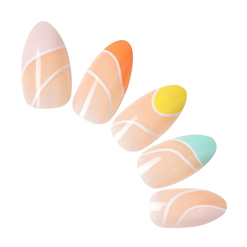 Almond shape multicolor french tips false nails S04042