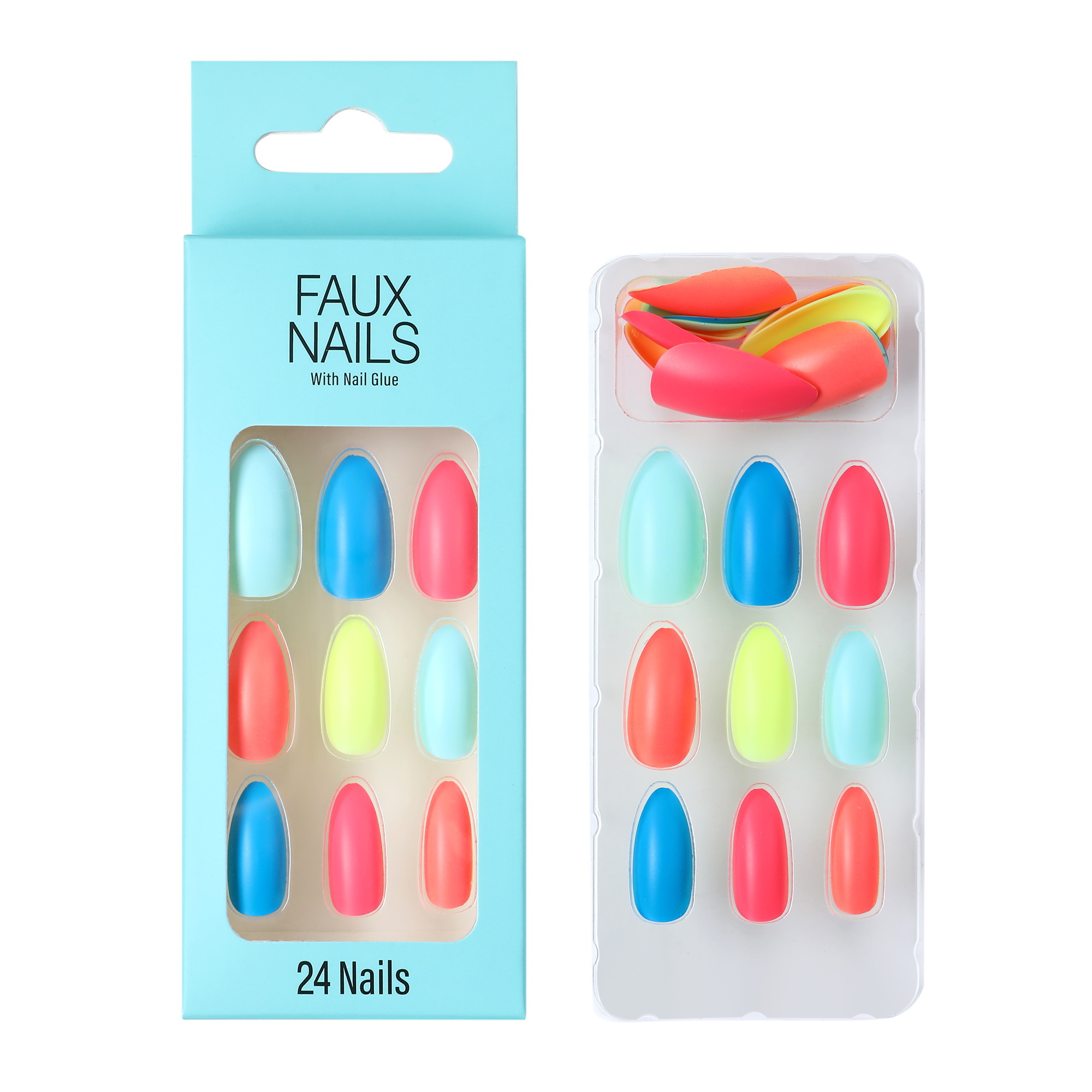 Almond shape multicolor rainbow false nails S04028-334