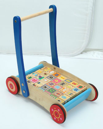 • Alphabet block packed in a wheeled cart for easy transport and storage.