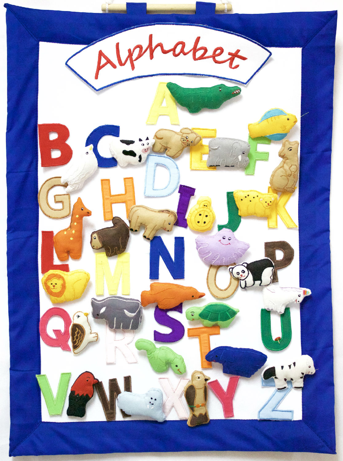 Specially designed for children learning alphabets, animals and colors, this wall chart is surely an attention grabber with its bright contrasting colors and lovely design. The alphabet appliques and stuffed animals are easily detachable, letting kids develop their fine motor skill through interactive plays. Have this versatile one hung onto your wall for an educational decoration.