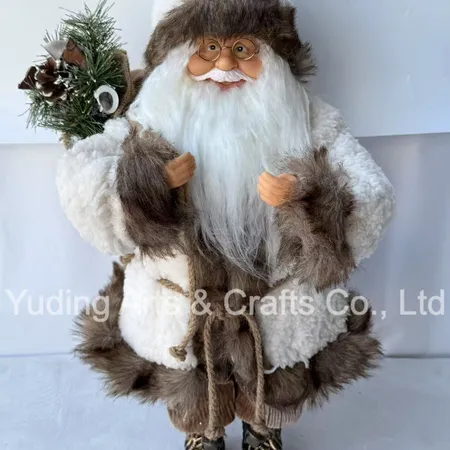 Embrace rustic holiday charm with our Alpine Lodge Santa Claus. Featuring a cozy sherpa-style coat with rich brown faux fur trim and a jute rope belt, this Santa evokes the warmth of a mountain cabin. He carries a pinecone gift sack with frosted greenery for an authentic woodland touch. Available in multiple sizes and customizable with matching Mrs. Claus and reindeer companions.