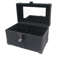 • Square plastic corners in black, Key lock & handle, Black non-woven lining & mirror.