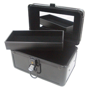 • Round protective corners in black, Key lock & handle, One aluminium empty tray, Black non-woven lining & mirror.