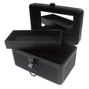 • Round protective corners in black, Key lock and handle, One aluminium empty tray, Black non-woven lining and mirror.