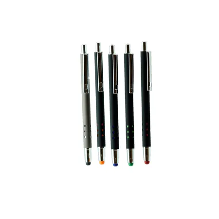 Aluminium touch ball pen,rubber finished barrel with some holes on the bottom,chrome parts,touch stylus color match the colorful weight spring inside.